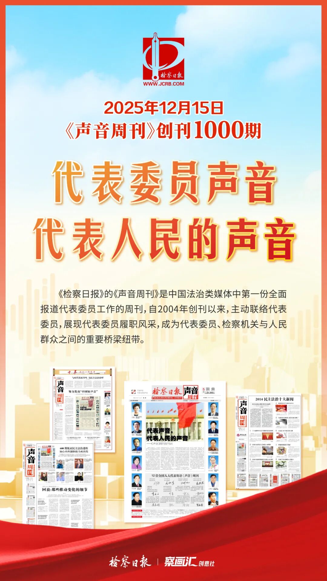 今天,《声音周刊》迎来第1000期,恰逢“十五五”规划即将扬帆起航的关键节点。我们将继续以习近平新时代中国特色社会主义思想为根本遵循,一体学思践悟习近平法治思想、习近平文化思想,围绕高质量发展、共同富裕、法治中国建设等重大议题,让代表委员的履职担当、检察机关的监督实践、人民群众的正义期盼,转化为可感知的法治力量。