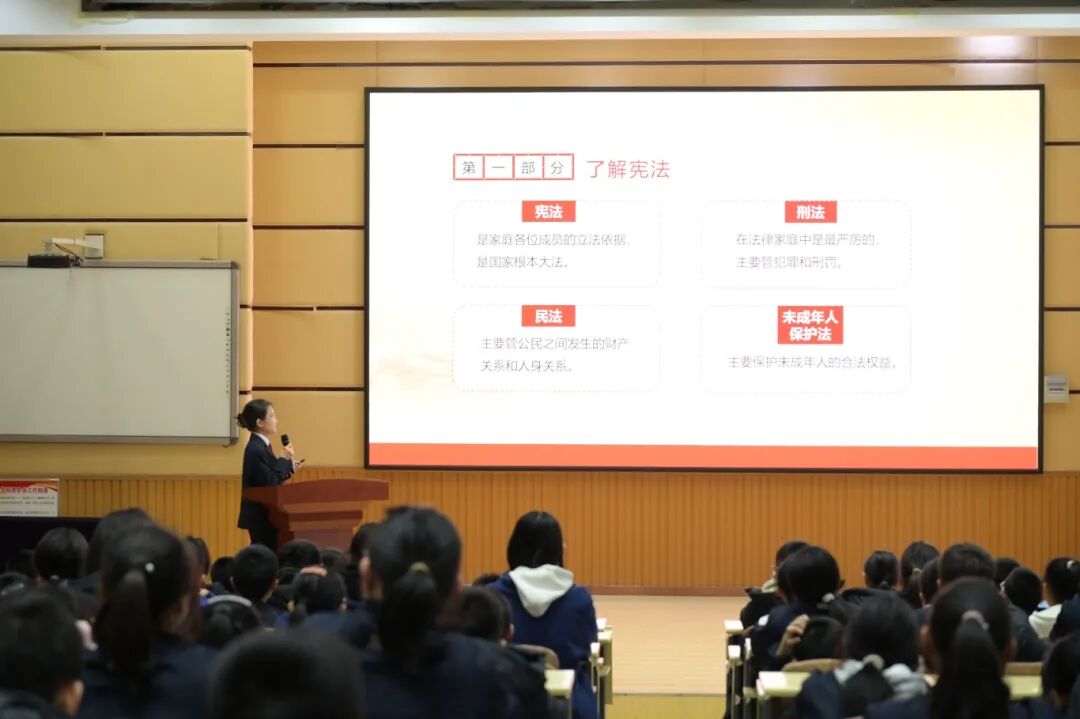 宪法宣讲,护航健康成长。活动中,检察人员围绕“什么是宪法”“宪法的发展”“宪法与我们的一生”等内容,用通俗易懂的语言向师生们讲述了宪法的地位作用、基本原则和主要内容,并针对在校学生可能面临的校园欺凌问题,结合真实发生的案例讲解什么是校园欺凌及如何进行自我保护等问题,进一步加深了同学们对宪法的认识和理解,提高维护自身合法权益的能力。同时,检察人员通过分享追索抚养费支持起诉典型案例,向同学们介绍了民事检察在未成年人保护工作中起到的重要作用。