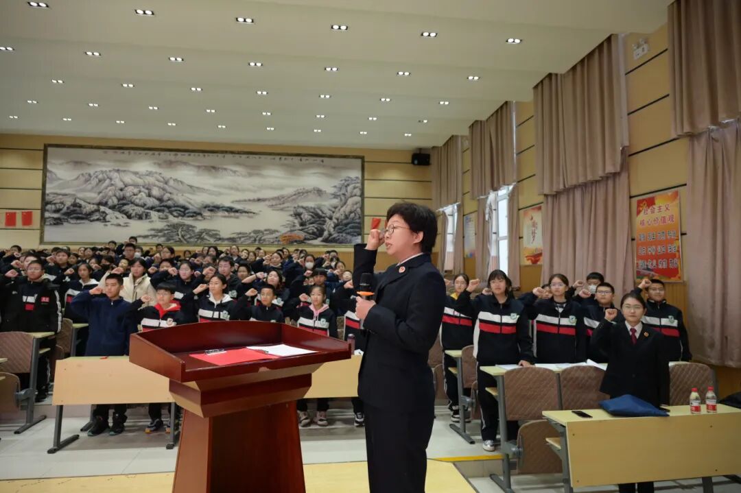 宪法宣誓,筑牢法治信仰。随后,检察人员带领同学们进行了宪法宣誓,并领诵了宪法节选内容,加深同学们对宪法的地位和核心内容的掌握,让宪法“声声”入脑入心。“忠于中华人民共和国宪法,维护宪法权威,履行法定职责,忠于祖国、忠于人民……”同学们洪亮的声音在教室里回荡,法治的种子在每一个少年心中生根发芽。